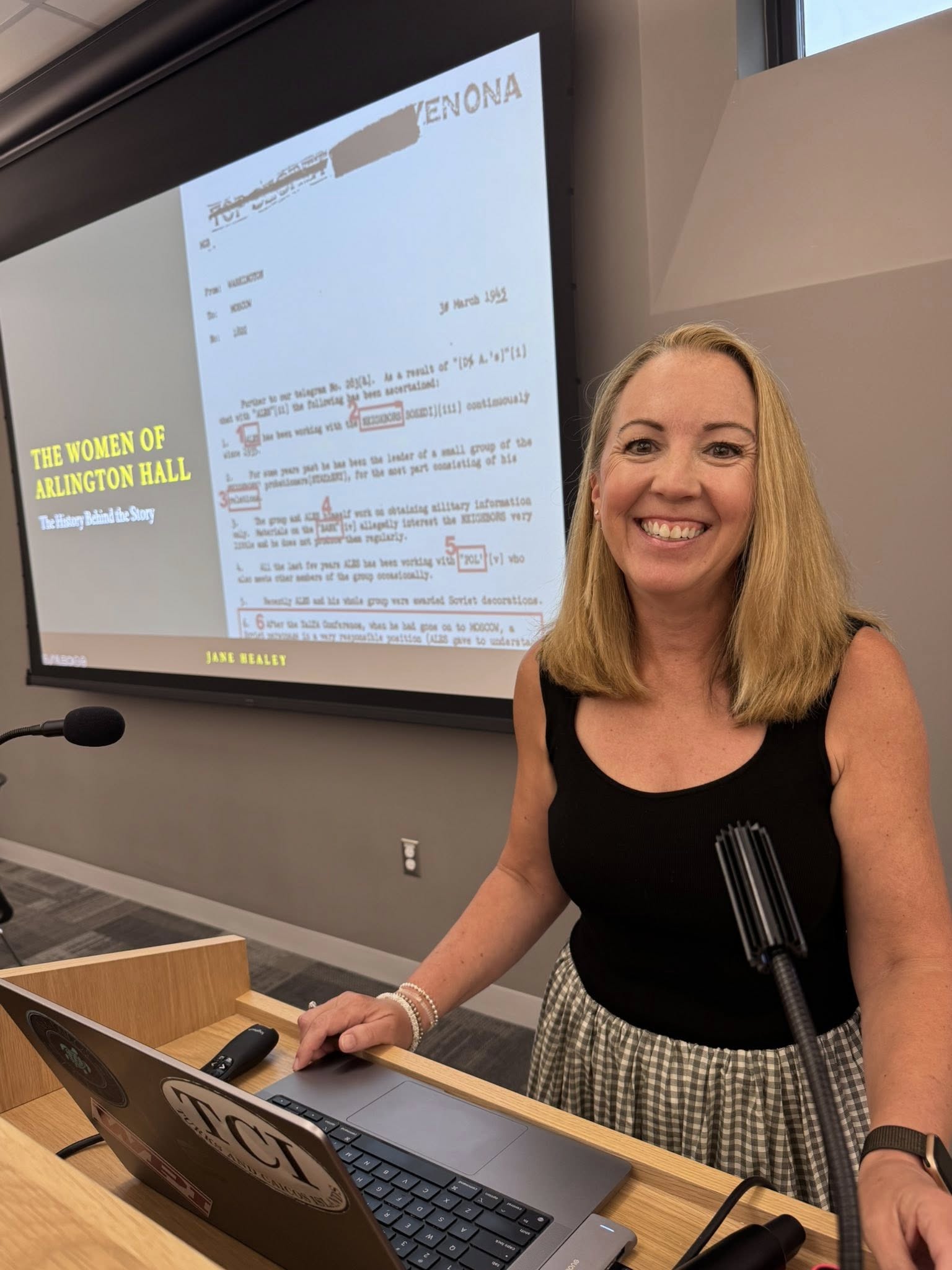 Healey did extensive research for the book, which included looking at some of the actual decoded and translated telegrams that have been declassified. Her main challenge in writing this book, she told the audience, was making a complex and potentially dry subject accessible and exciting to her readers.