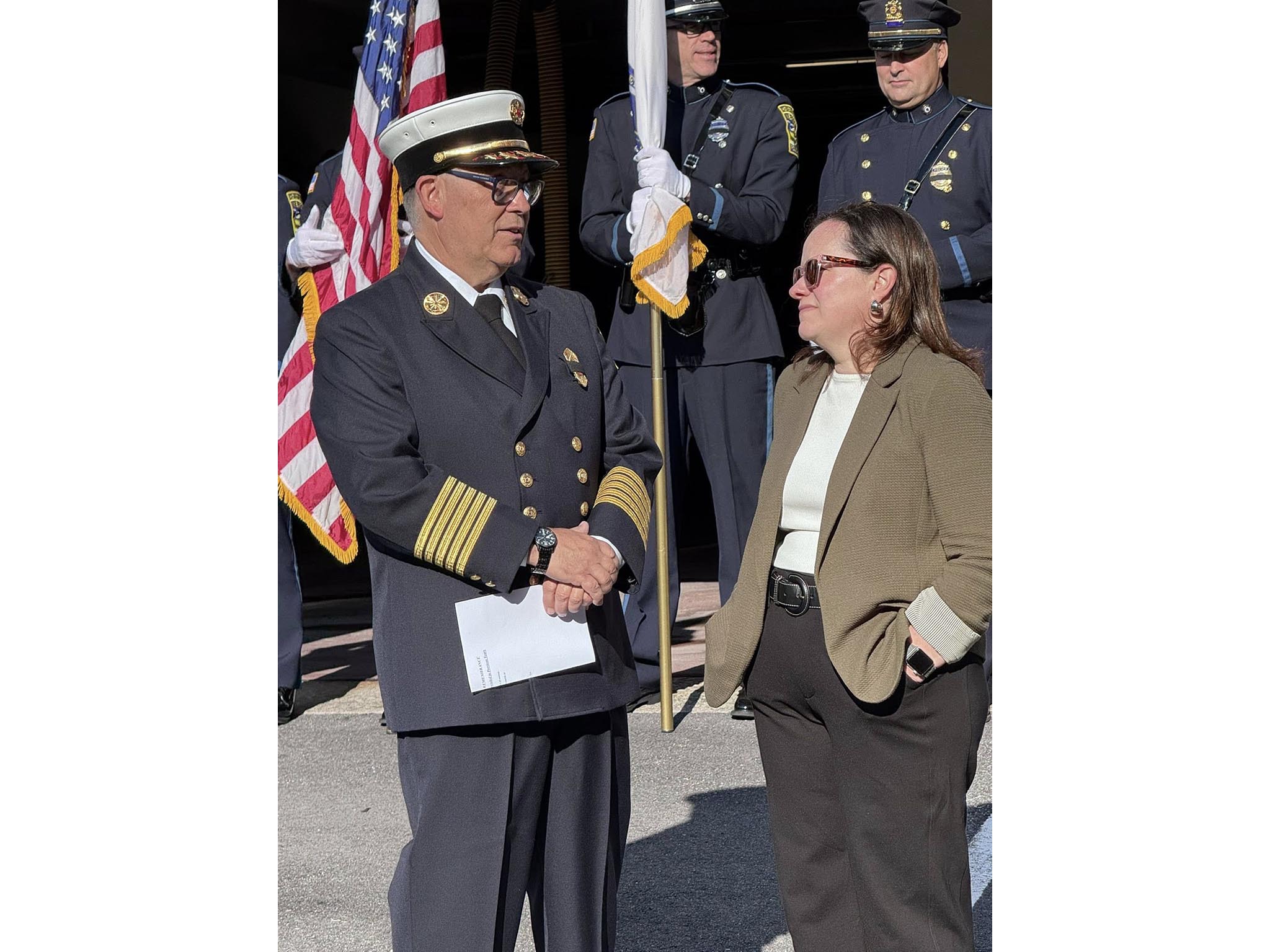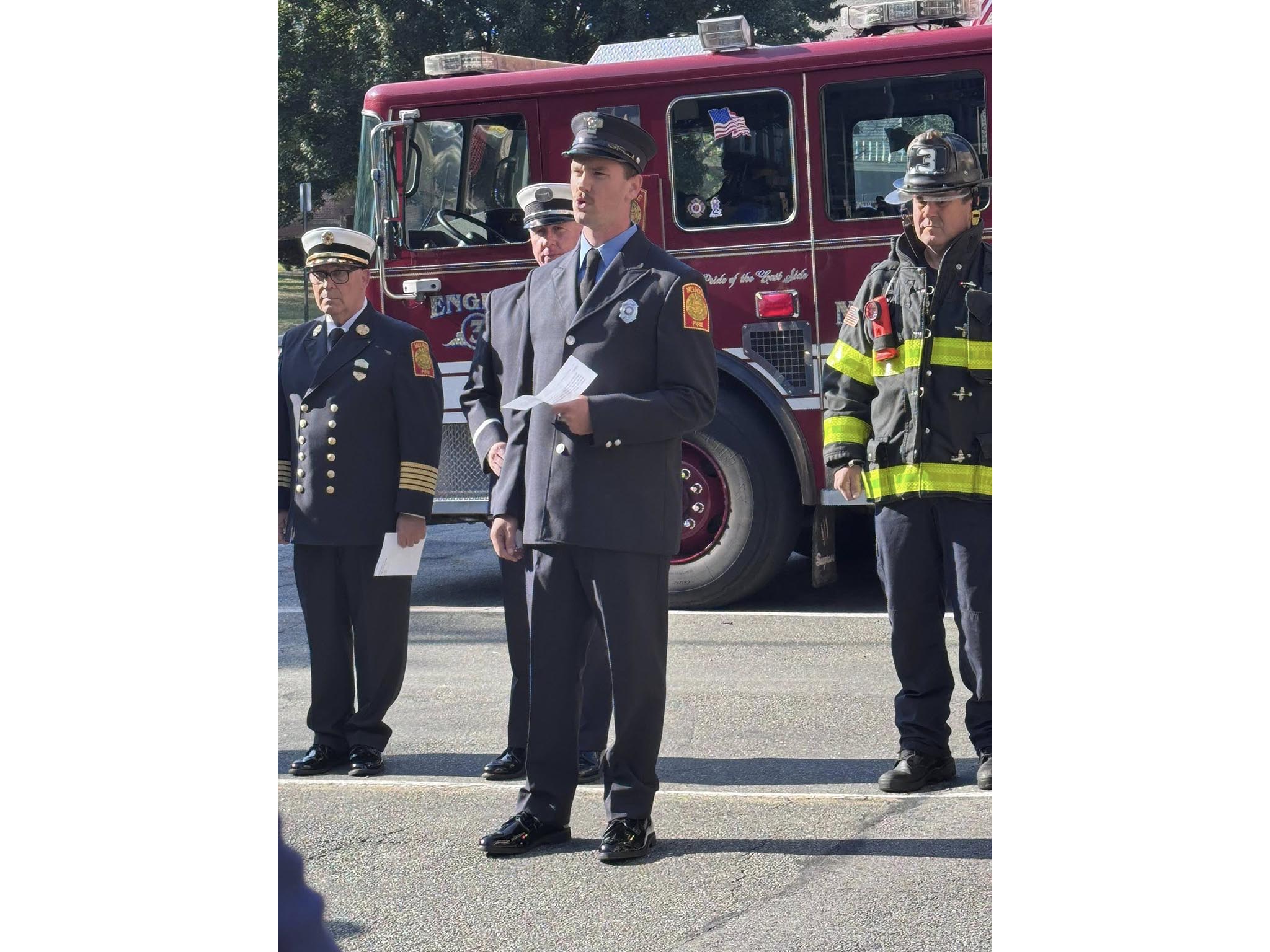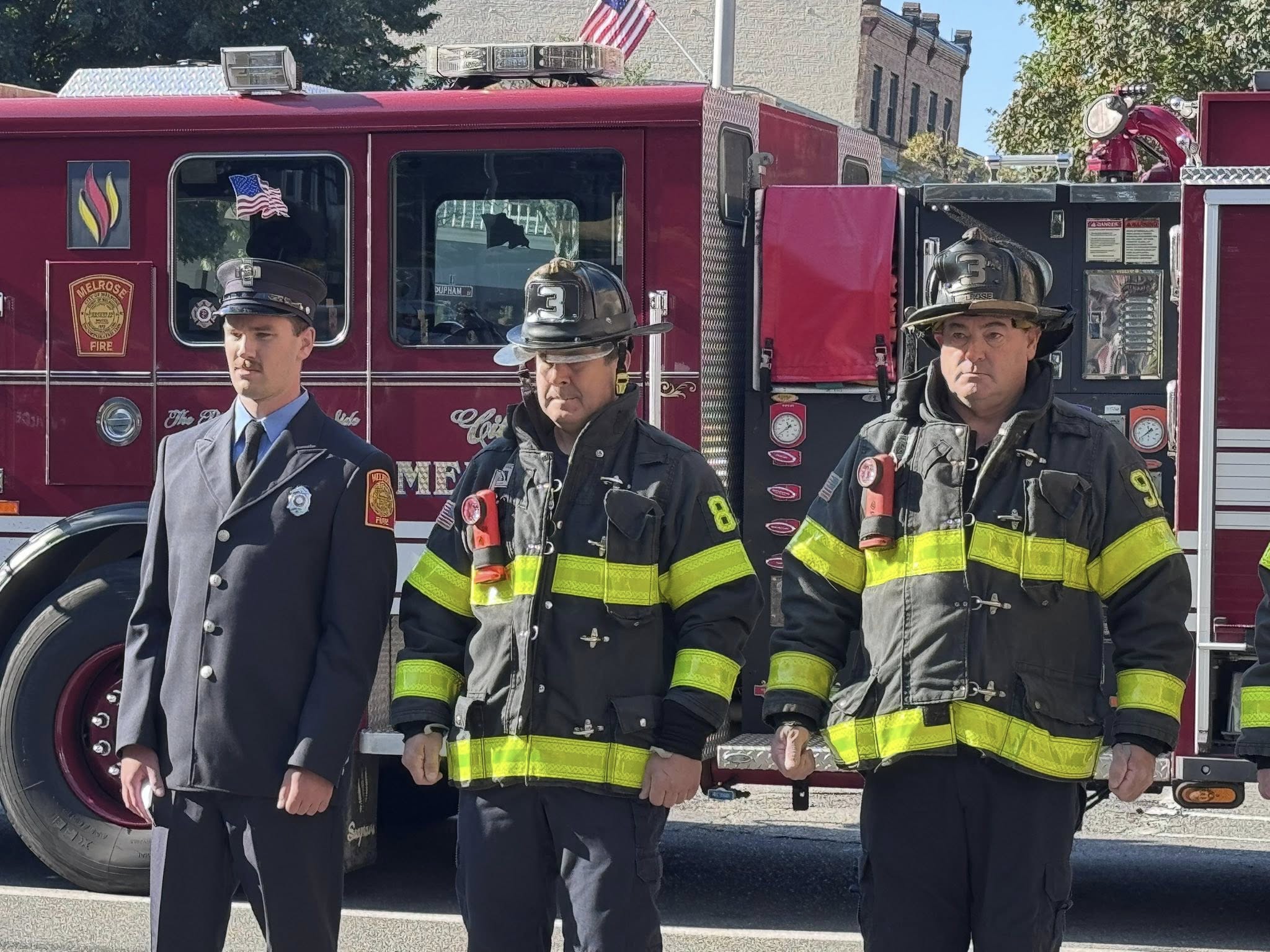 This morning, members of the Melrose Fire Department, the Melrose Police Department, and city officials met in front of the Central Fire Station to observe the 24th anniversary of the September 11th attacks and honor the nearly 3,000 lives that were lost in the attack, including over 400 first responders.