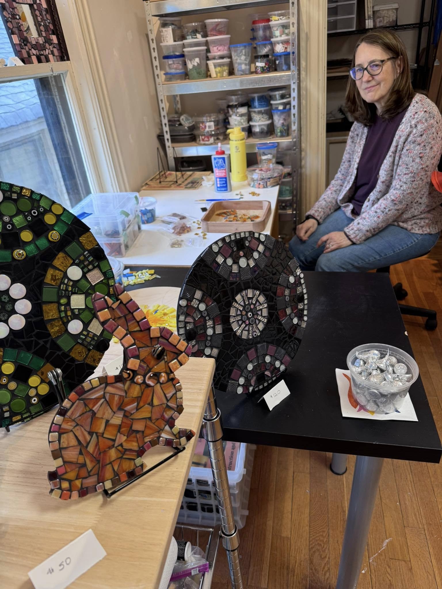 Visitors can see Roberta Tobey Gertz's mosaic art at her home studio in the Horace Mann neighborhood. In addition to seeing how she constructs her mosaics, you can see a number of her mosaics throughout her house and in her garden.