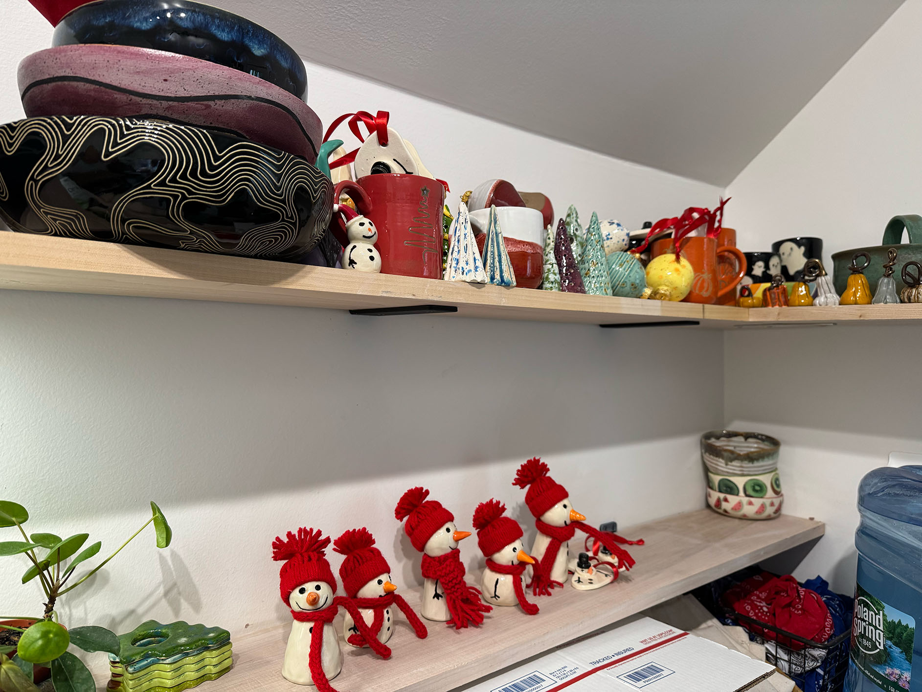 Allie Karthaus is new on the Melrose art scene - she started Alta Ceramics and set up a home pottery studio in her garage just this year. She is part of a group of potters who take classes together at Follow Your Art - initially from Michelle Ramadan of Meesh Pottery, until she moved to Paris earlier this year. She has a mix of larger bowls and smaller, more whimsical pieces like napkin rings and snowman sculptures with hand-knitted scarves.
