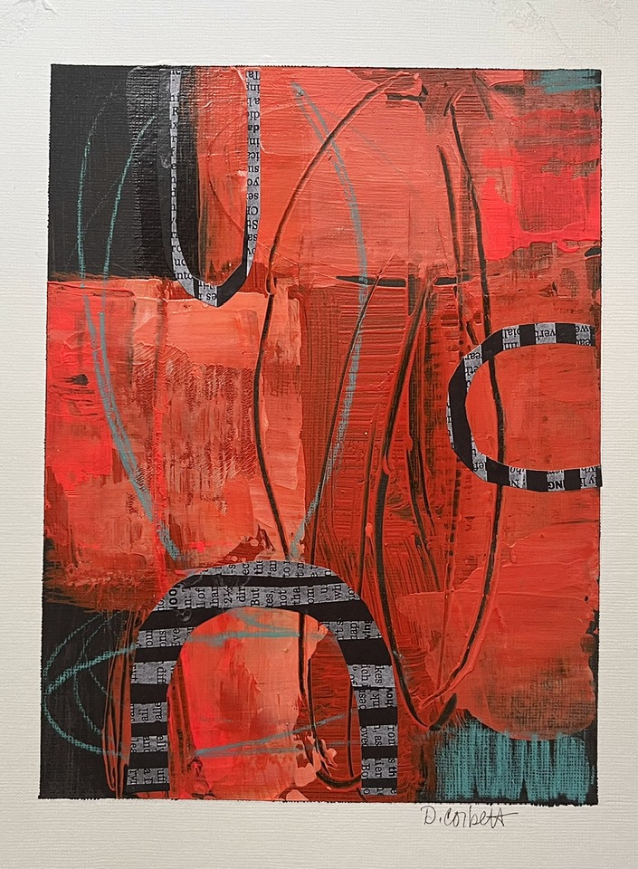 Deb Corbett, whose iconic abstract mixed-media paintings are a familiar sight at Paper and Clay and at Melrose arts events, will be opening her studio to visitors, who can see where she creates her large canvases and her smaller works.