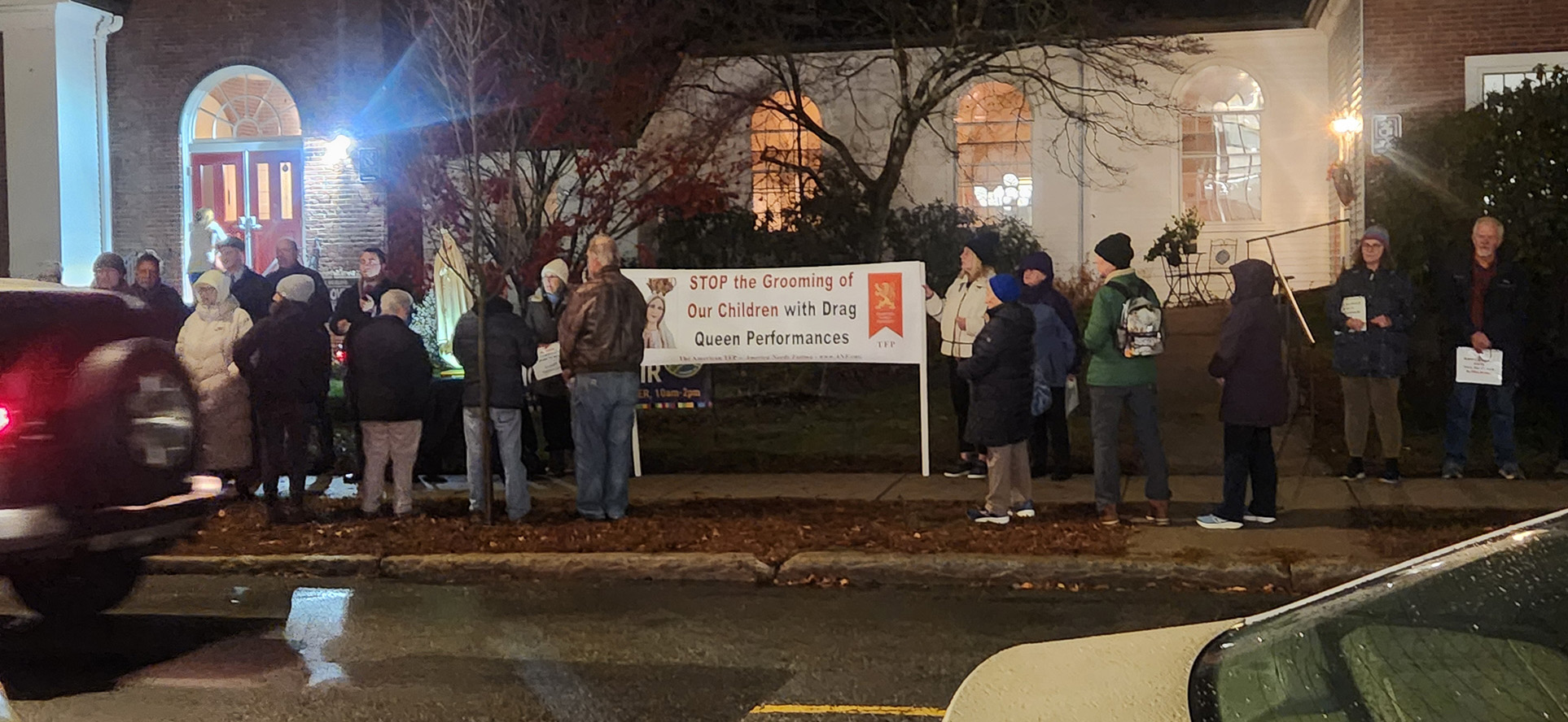 Thirty Catholics from Melrose and surrounding communities ended up attending the Rosary Rally. Two of the participants were connected to the American Society for the Defense of Tradition, Family, and Property, which has organized protests against events involving the Sisters of Perpetual Indulgence in other places, although Angelo and McDermott stated that the event in front of MUUC was entirely local, and was not sponsored or supported by any kind of organized group.