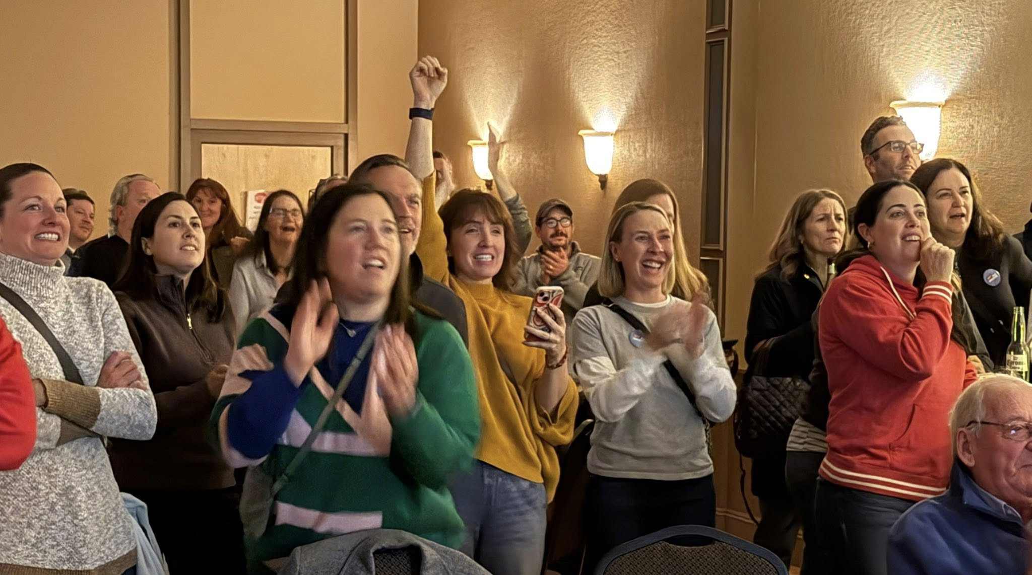 Members of the Yes for Melrose campaign at the Knights of Columbus, hearing the election results