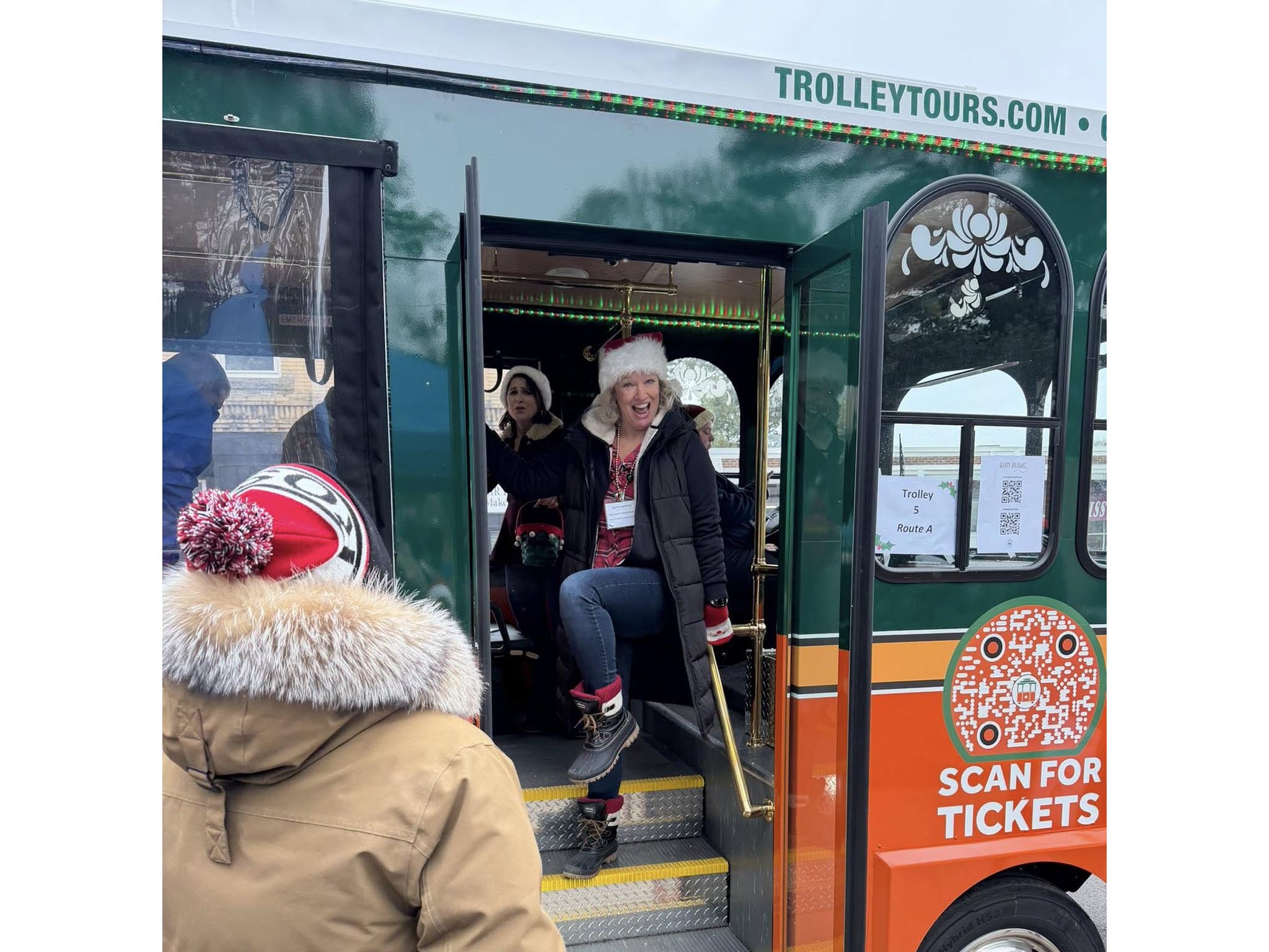 City Councilors Cal Finocchiaro and Manjula Karamcheti were trolley guides