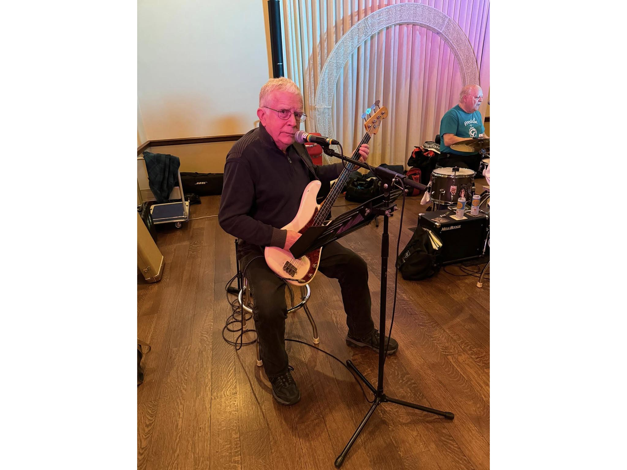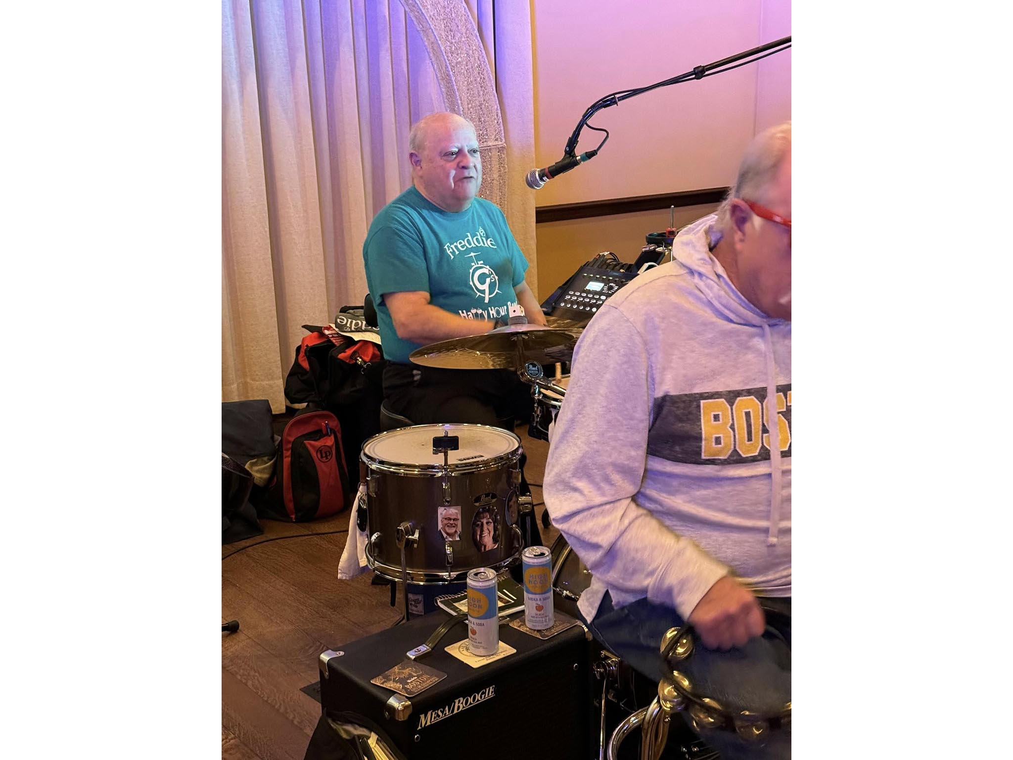 Freddie Gilfeather, has been drumming since he was 14 — though truthfully, he’s been tapping on anything he could find since he was a kid. When Freddie lost his father at age 11, his mom gave him his first drum set, and he’s never looked back. By 1964, he was in his first band, The Wormbats, who even opened for the legendary Dave Clark Five at the Boston Garden!