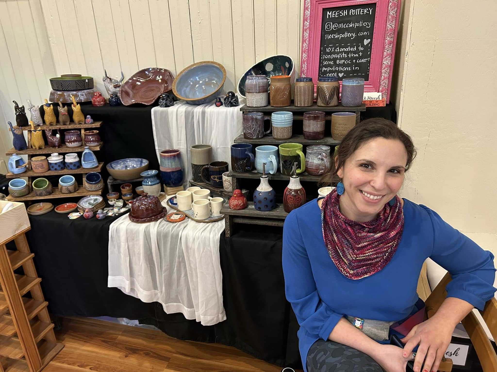 Active in the local arts scene, Meesh regularly showcases her one-of-a-kind ceramics at events like the Melrose Open Studio Tour and the Melrose Arts Festival.