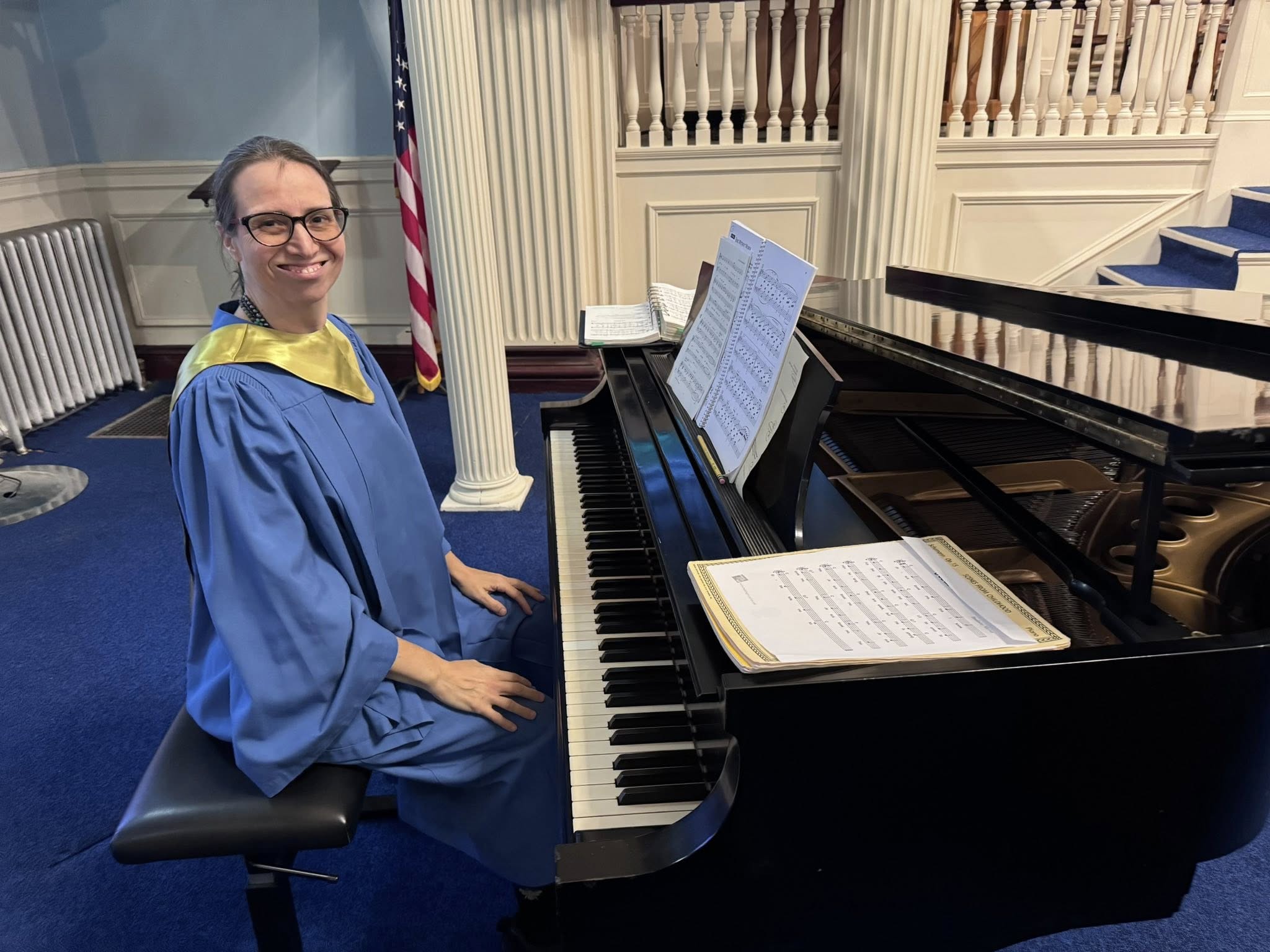 This beautifully restored, 1950s-era black Steinway made its shining debut during this morning’s worship service. Under the talented hands of Music Director Rachel Hassinger, the instrument filled the sanctuary with a rich, resonant sound that seemed to breathe new life into the church’s historic space.